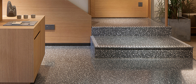 此項目墻面及隔區(qū)裝置采用了大量的異形和弧形整體設計,這對水磨石現(xiàn)場施工是一個極高技術難度的考驗,我司通過專業(yè)的產(chǎn)品材料方案及合理的施工工藝方案,成功解決此技術難題,項目完成之后室內外空間呈現(xiàn)整體的原始設計質感,匠心品質把控,色調清新淡雅,營造出客戶需求的極致體驗氛圍,并提供專業(yè)后期保養(yǎng)維護方案,獲得客戶高度贊譽。